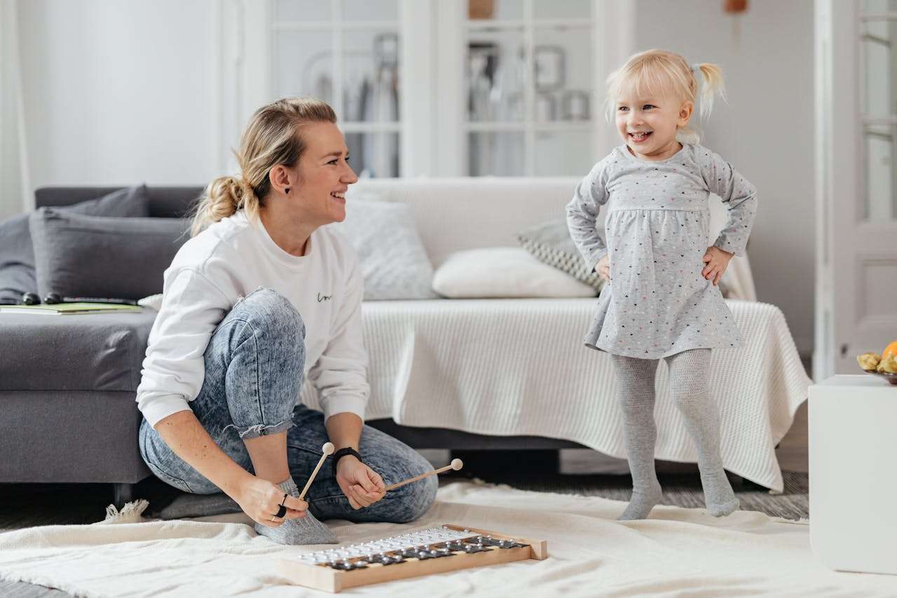 - The mother sings a soft lullaby to her baby at bedtime.
