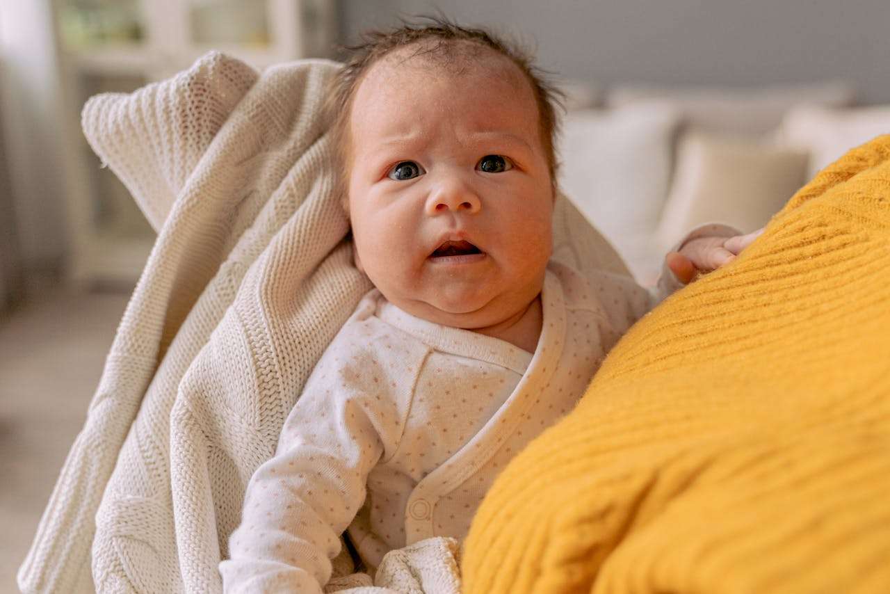 The baby's outfit has easy poppers at the front.