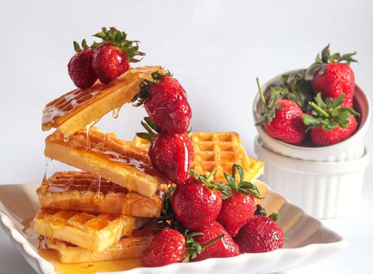 I love strawberries. They are small and red. They have green leaves on top. Strawberries are juicy and delicious. I like to eat them with sugar or in a fruit salad. My sister and I pick strawberries in spring.